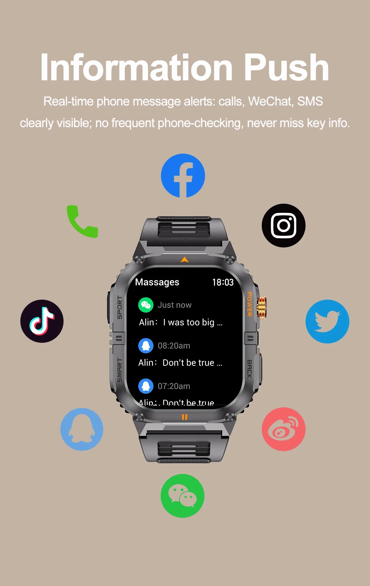 APPLICATION NOTIFICATION REMINDER: Supports SMS, incoming call reminder, WeChat.